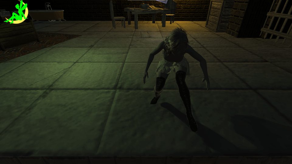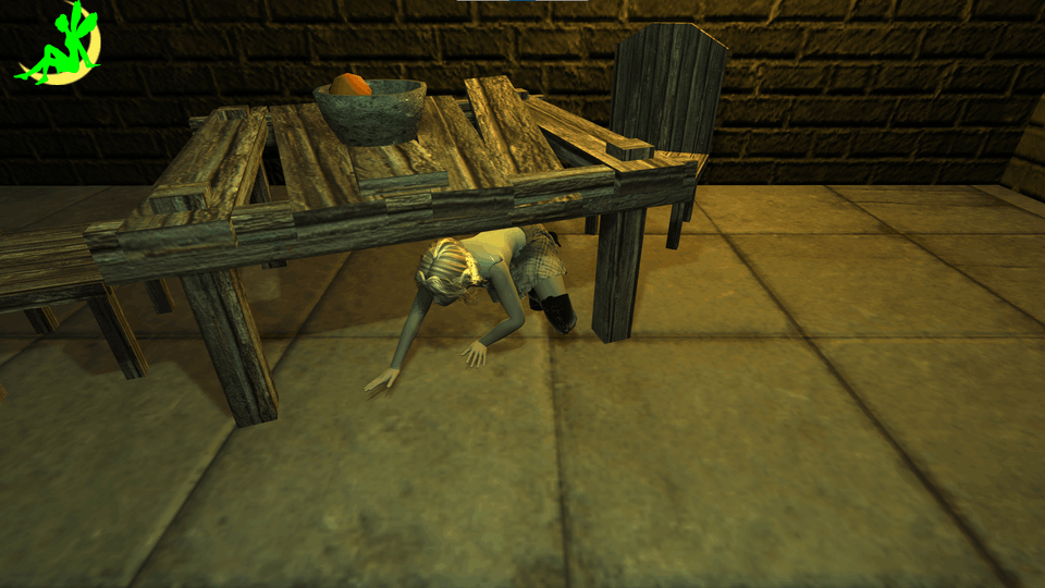 しゃがみ中は走れません。天井が低い場所などを進むことができます。走ると体力を消耗します。